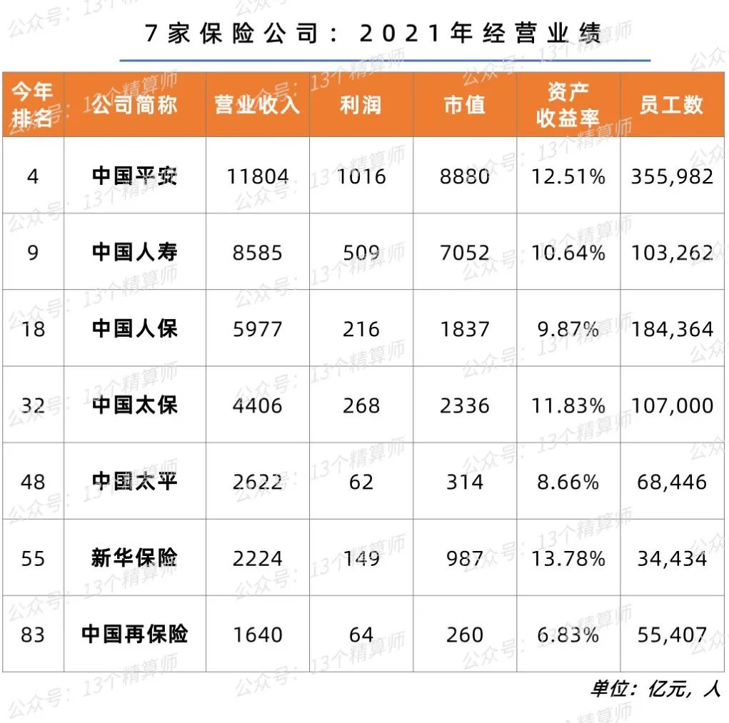 其中,7家保险公司,继续上榜《财富》中国500强!