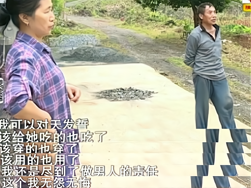 可谭宏景却说他可以对天发誓,自己并没有亏待过杨秀芸母子俩,给他们该吃的吃了,该穿的穿了,该用的也都用了,也给儿子买房买车了。他觉得为这个家付出了这么多已经尽到了一个男人的责任,足够了,因此他感到无怨无悔。
