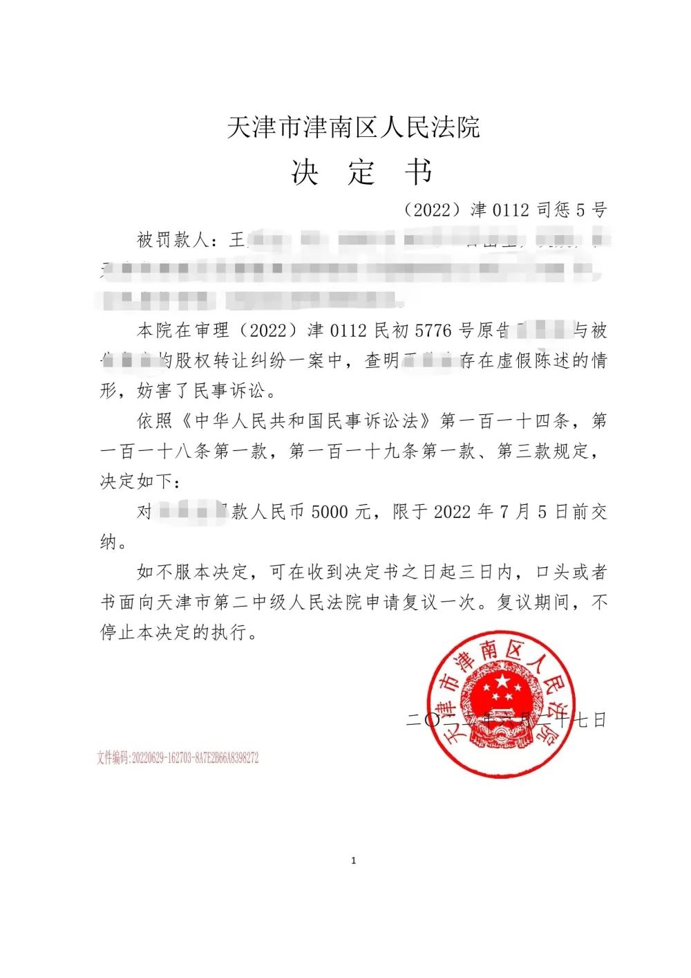 随后,承办法官传唤当事人王某本人及其委托诉讼代理人到庭接受询问。在充足的证据面前,王某认可拉走了设备并收取了剩余股权转让款,承认在律师不知情的情况下进行了虚假陈述。