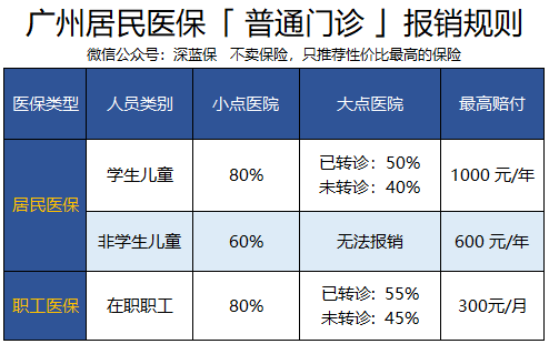 ③ 报销比例限制: 医保基本上没有 100% 报销的,例如广州居民医保,大人看门诊只能报销 60%。