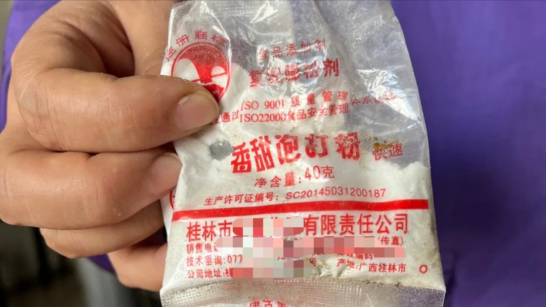 但是食品监督局的人直接在店铺中查出了43包“泡打粉”。