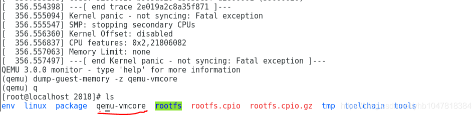如下图所示,成功在qemu 的kernel panic后,获得了coredump文件。