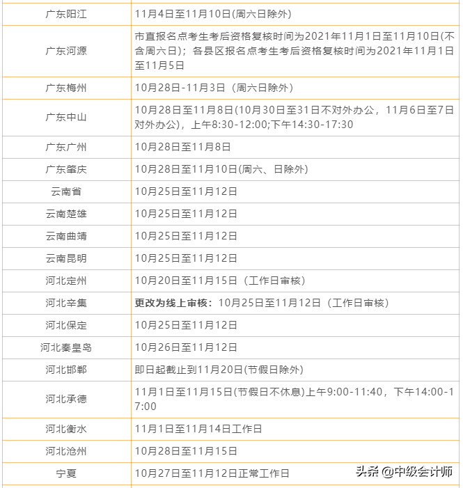 在江西财政厅发布的《关于开展2021年会计中级考试报 考资格后审工作的公告》中,明确:
