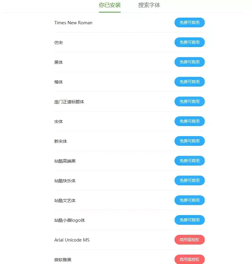 无从下手,这时我就在想啊,要是有个什么软件能自动帮我识别哪些是商用哪些是非商用的字体,多好。然后我一番百度下,找到一个字体网站,打开是这样的: