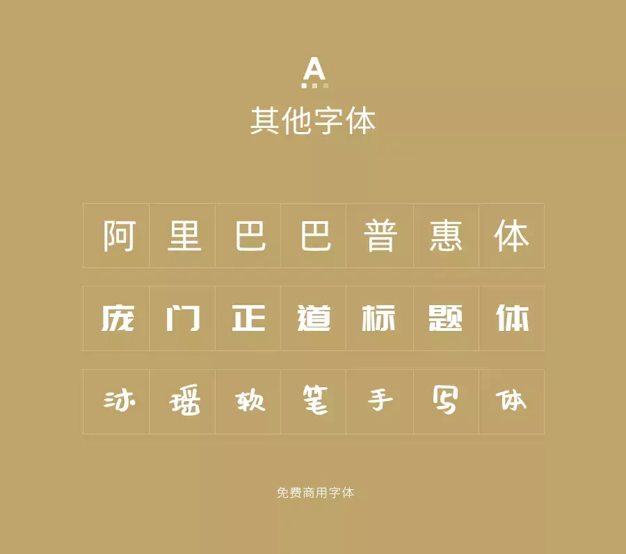这种在针对不清楚哪些字体是免费字体的情况下使用的方法,当然你也可以直接记住哪些字体是免费字体,这样在使用的时候,自己的大脑系统就自动识别了,这里为大家整理了现在可以免费商用的字体: