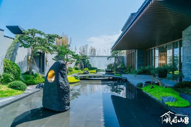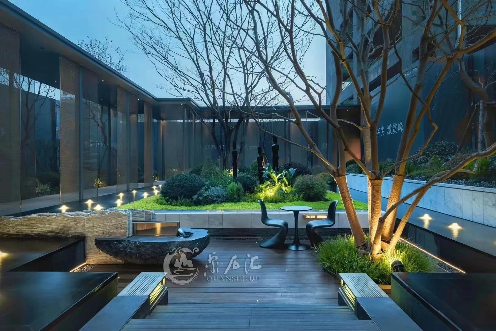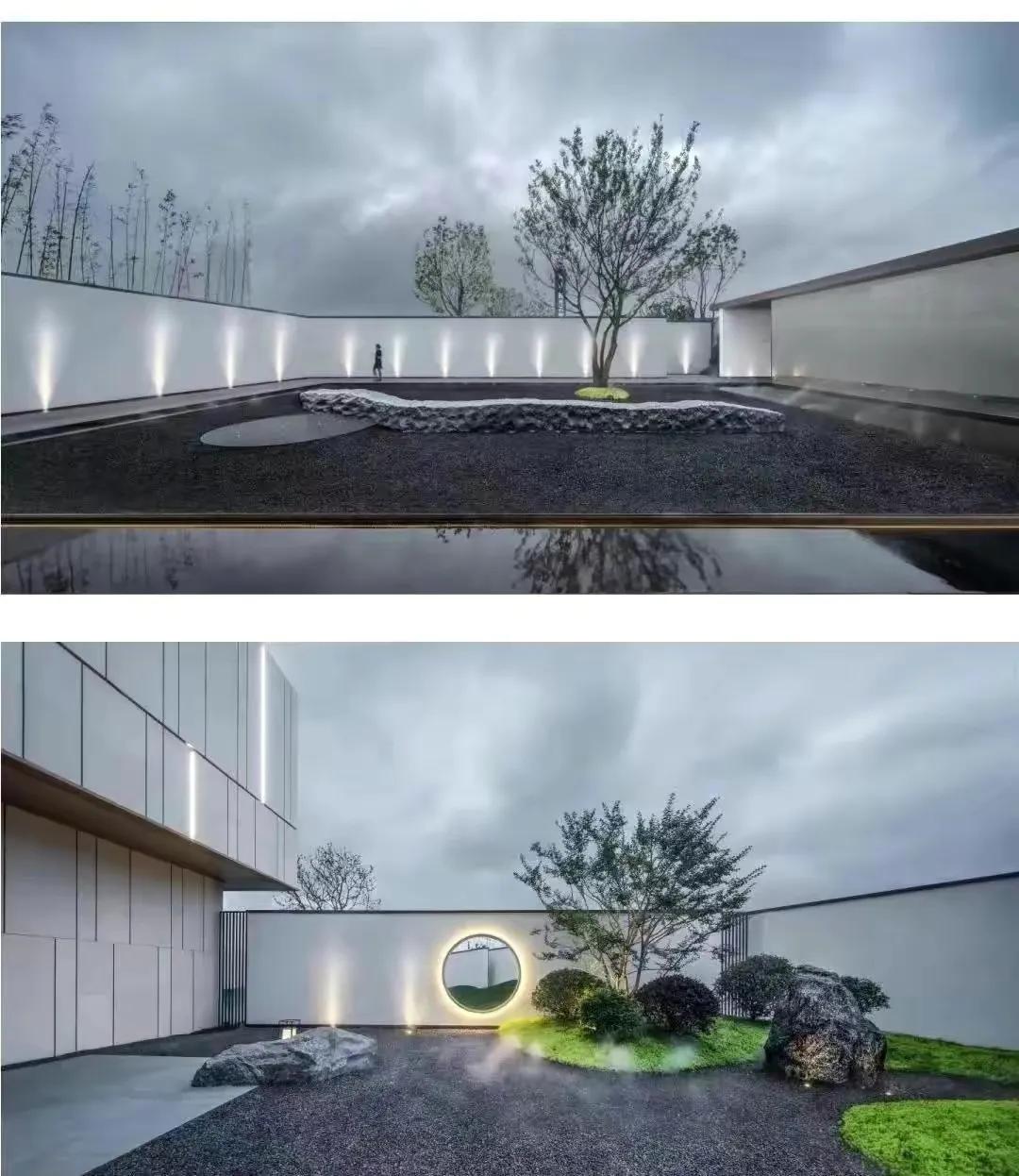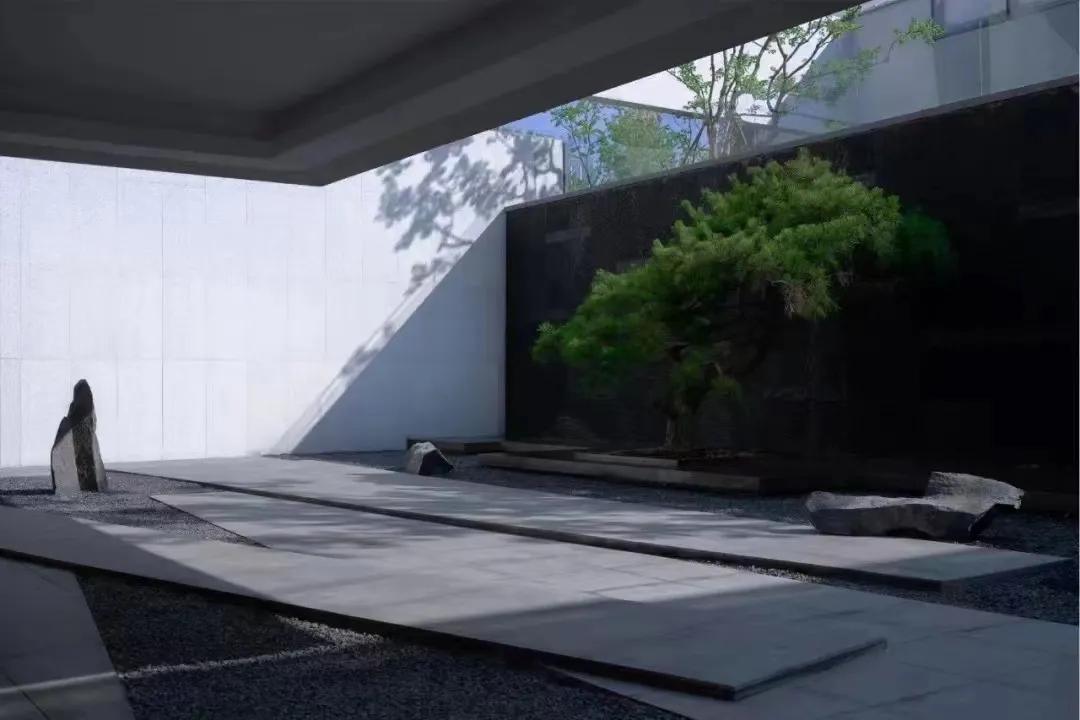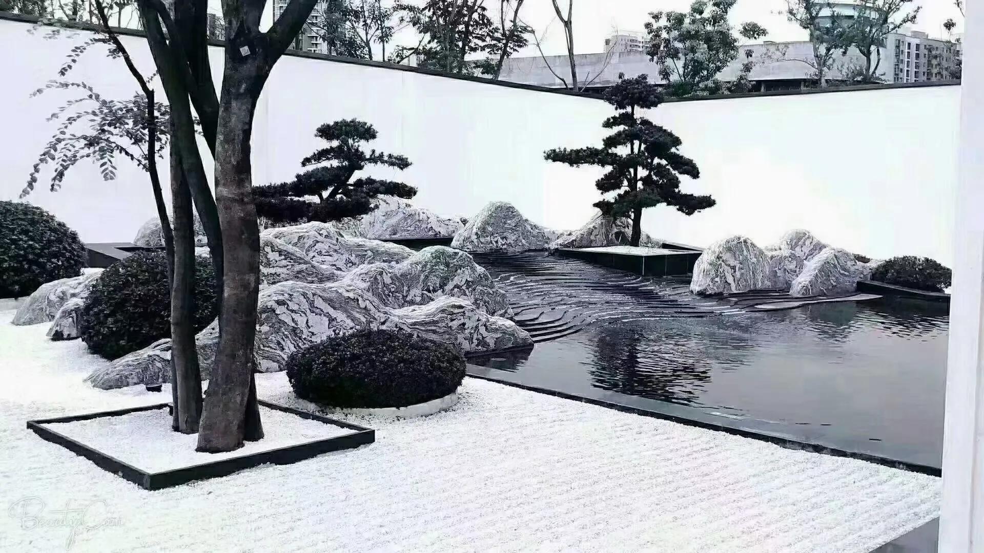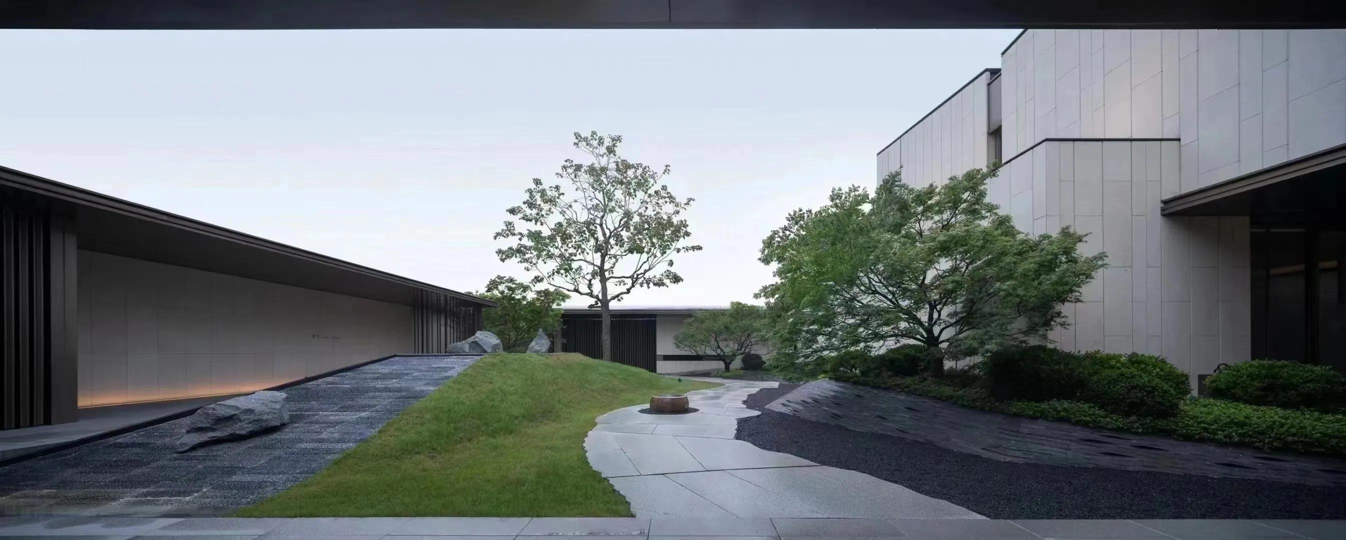 水墨画韵,传统中式或简中式,浅水如镜、同韵线条、讲究节奏、综合使用现代材质、科技。造景变化大气而不繁缛。