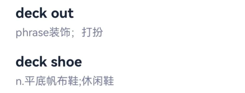 常用词组:deck out/shoe装饰/休闲鞋