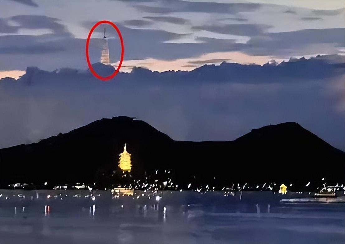 在7月8日,浙江杭州的西湖上空,就出现了“海市蜃楼”,只见一座闪闪发光的宝塔,悬浮在高空云层之中,看起来就好像是“天庭建筑”一般,着实令人称奇。