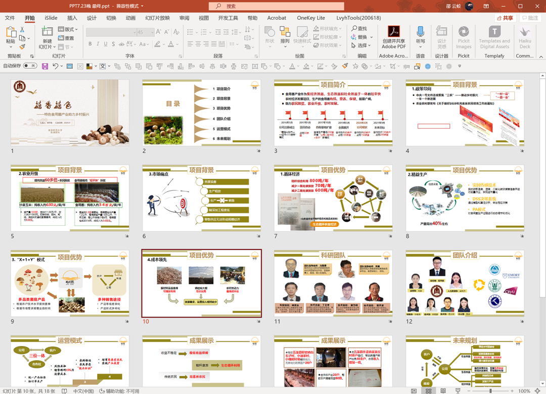 因为内容主要跟香菇有关,所以,我个人觉得原稿PPT 的色调,还可以:
