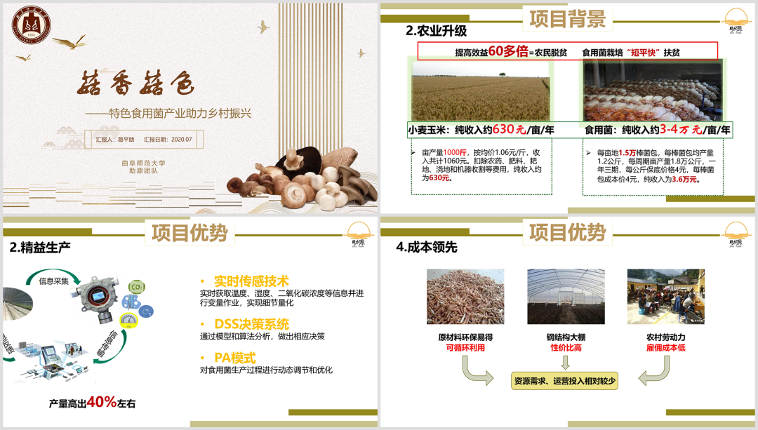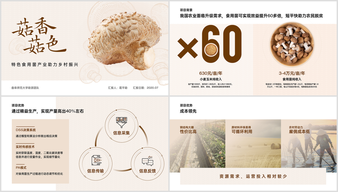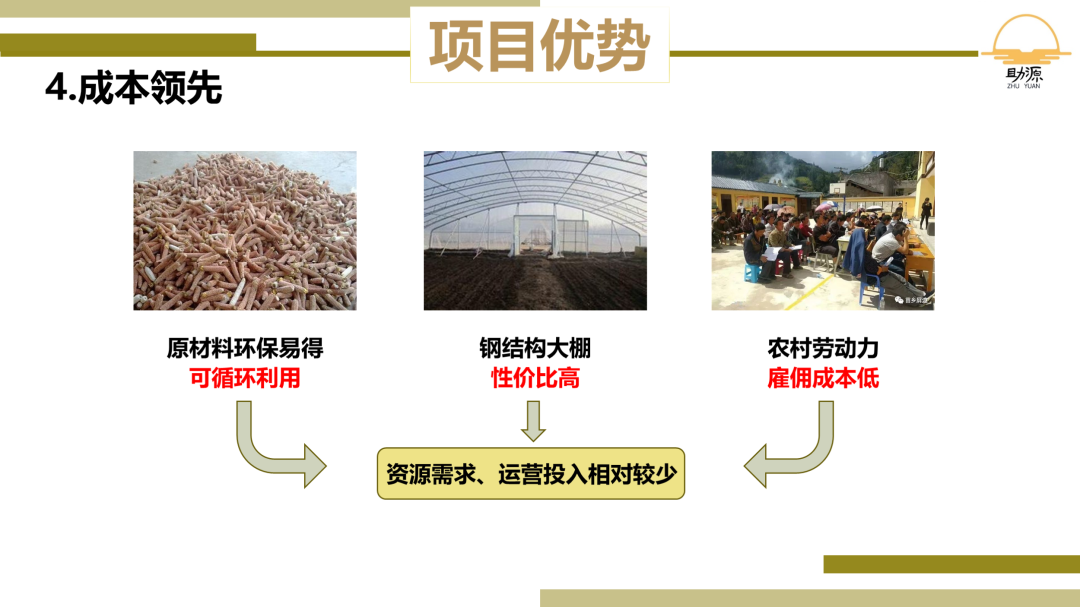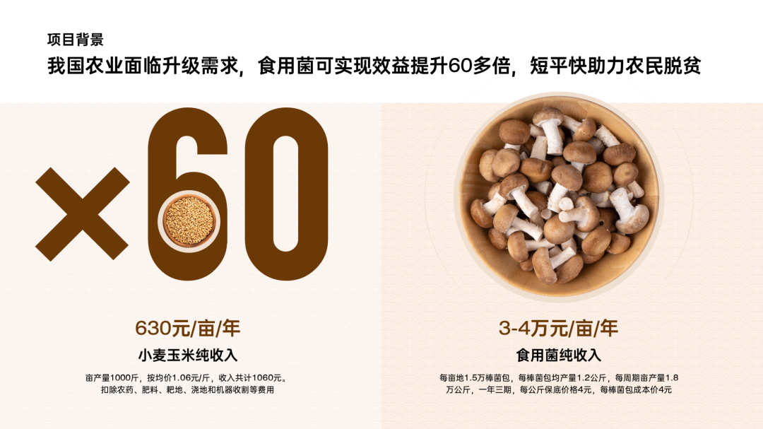 这是一份农业类项目的 PPT ,主要是联合农户去培植香菇。