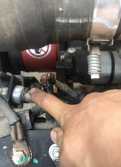 步骤六:检查起动机的供电、搭铁有没有虚接和松动的情况,果然问题找到了,马达的搭铁接线柱那里生锈了,清理锈斑后,再次起动,车子能够正常起动。