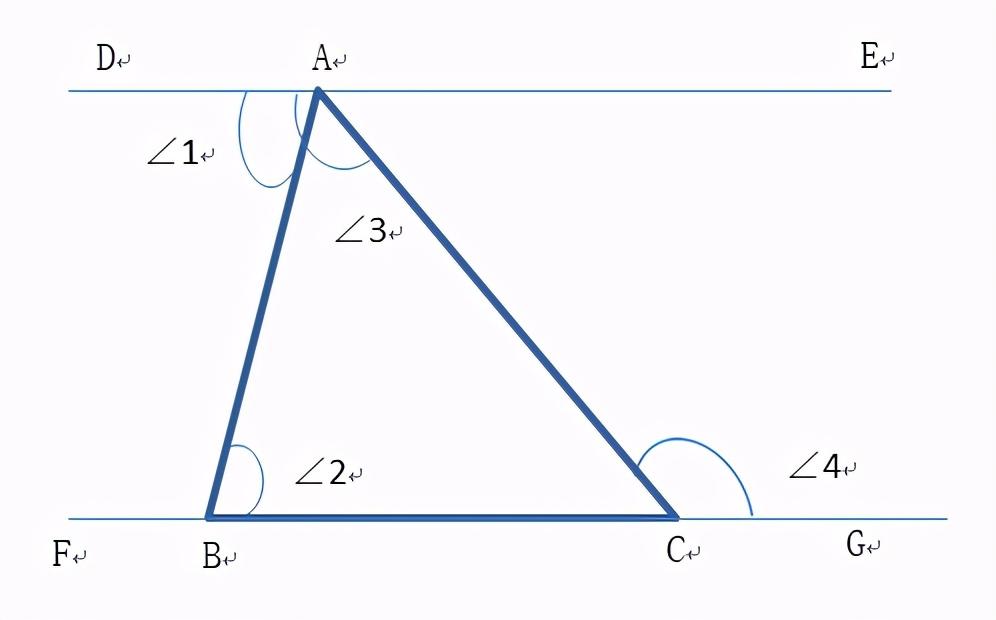 做一边BC的延长线FG,过A点BC边的平行线DE。