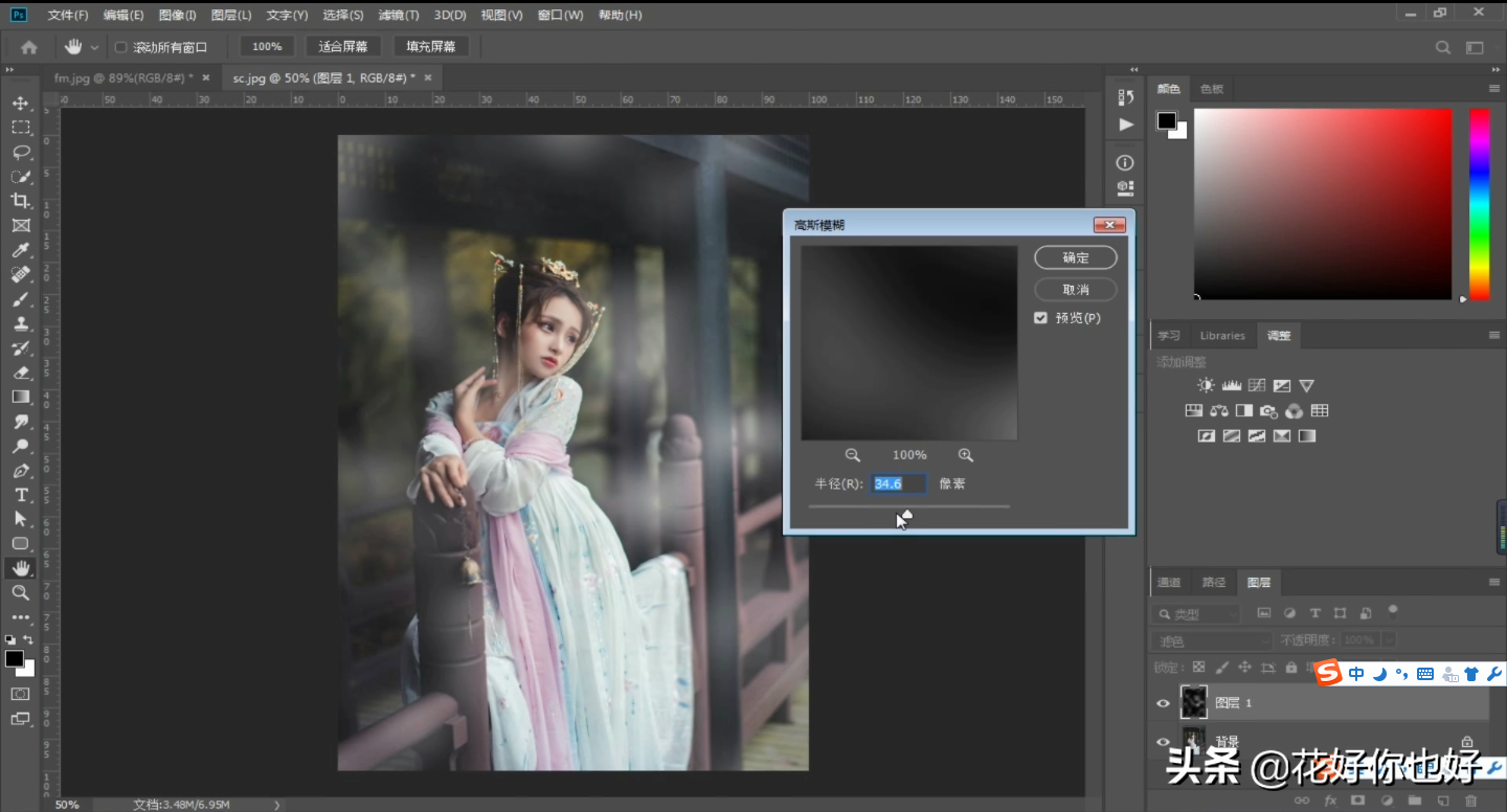 4.最后我们在方菜单栏执行滤镜-模糊-高斯模糊,给到一个合适的模糊值
