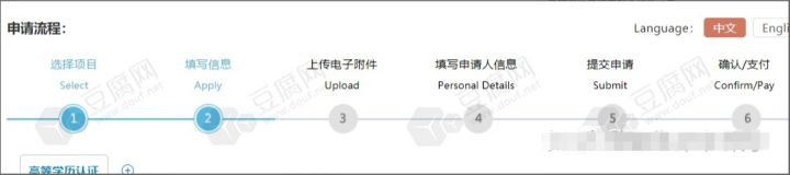 ⑤申请项目选择“高等学历认证”,申请目的选择“职称评定”