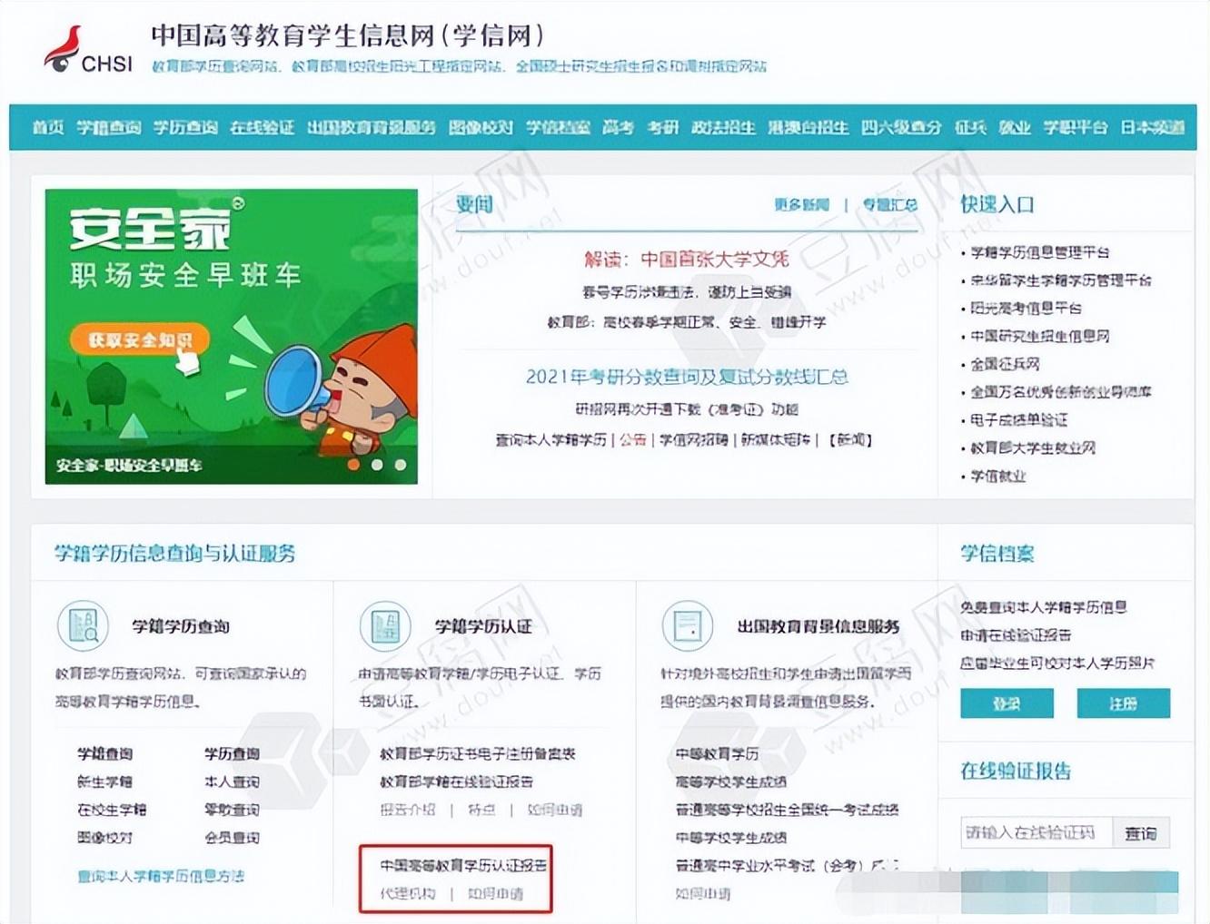 ①登录学信网官网(https://www.chsi.com.cn/),点击“中国高等教育学历认证报告”。