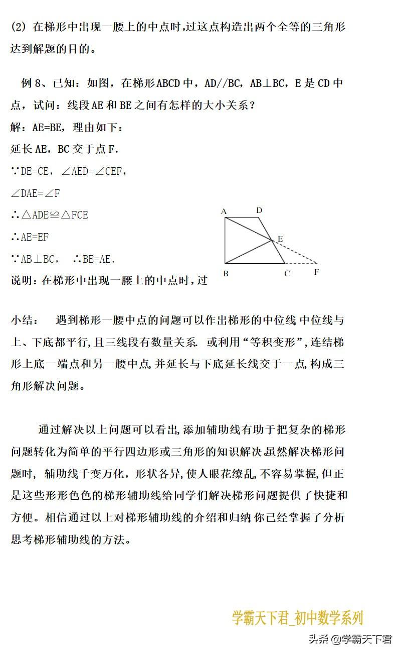 梯形是初中数学几何部分的重点内容,也是三角形知识的延伸,虽然部分版本的教材已经删除了这一部分教学内容,但并不影响它在初中数学中的重要地位,从几何角度来说,梯形是三角形的变化样式,也是三角形解题的一个重要思路。2020年浙江省宁波中考数学压轴题中就涉及到了梯形的知识点,本期学霸天下君给大家分享初中数学专题——学会了梯形,压轴题都能做出来。