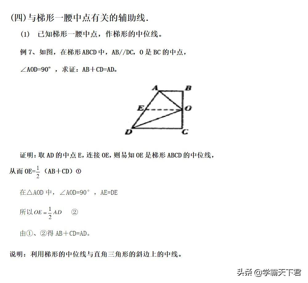 四、明确添加辅助线目的,掌握常见的添辅助线的方法。