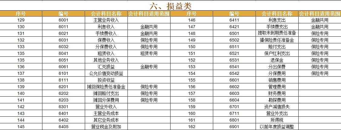 六、损益类会计科目
