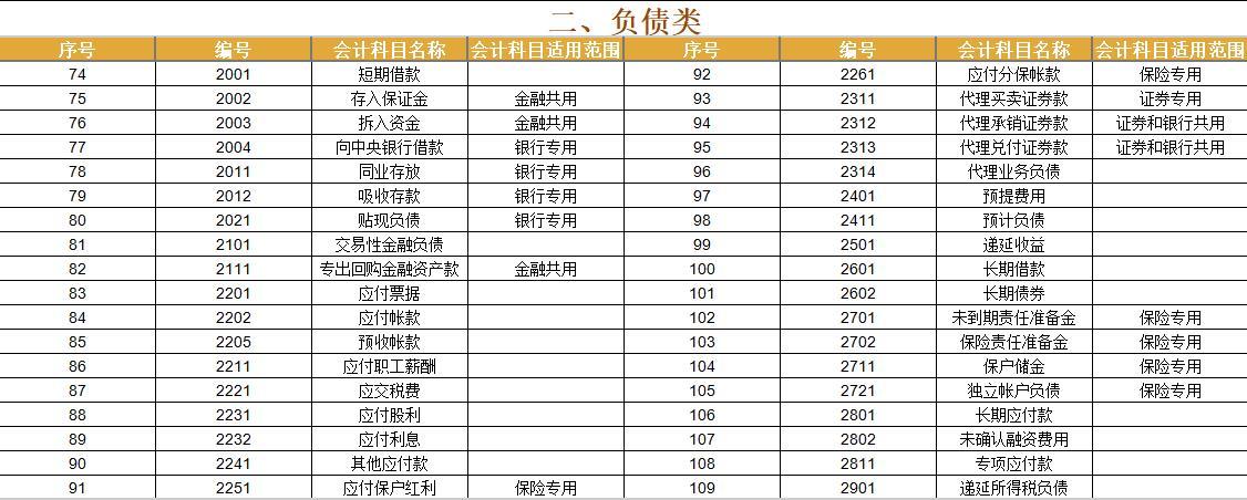 二、负债类明细科目