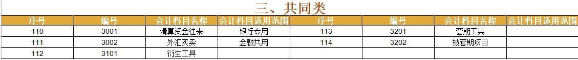 三、共同类明细科目