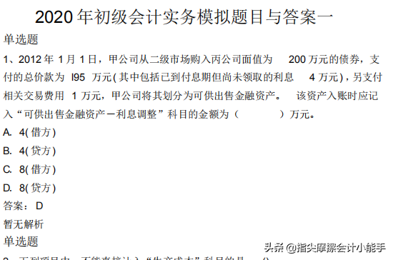 初级会计职称考试将开始,如今阶段正到了刷题冲刺的时候,时间太短,书本还没看完?怎么办?今天小编整理了初级会计职称考试《初级会计实务》最新考前模拟押题!押题!押题!考生考前必做!