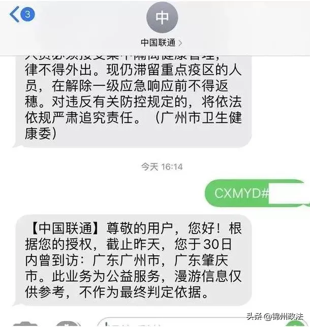 编辑短信CXMYD#身份证号码后四位到10001,授权回复Y后,实现“漫游地查询",可查询手机号近15日内的途径地信息,不提供准确位置、逗留时间等。