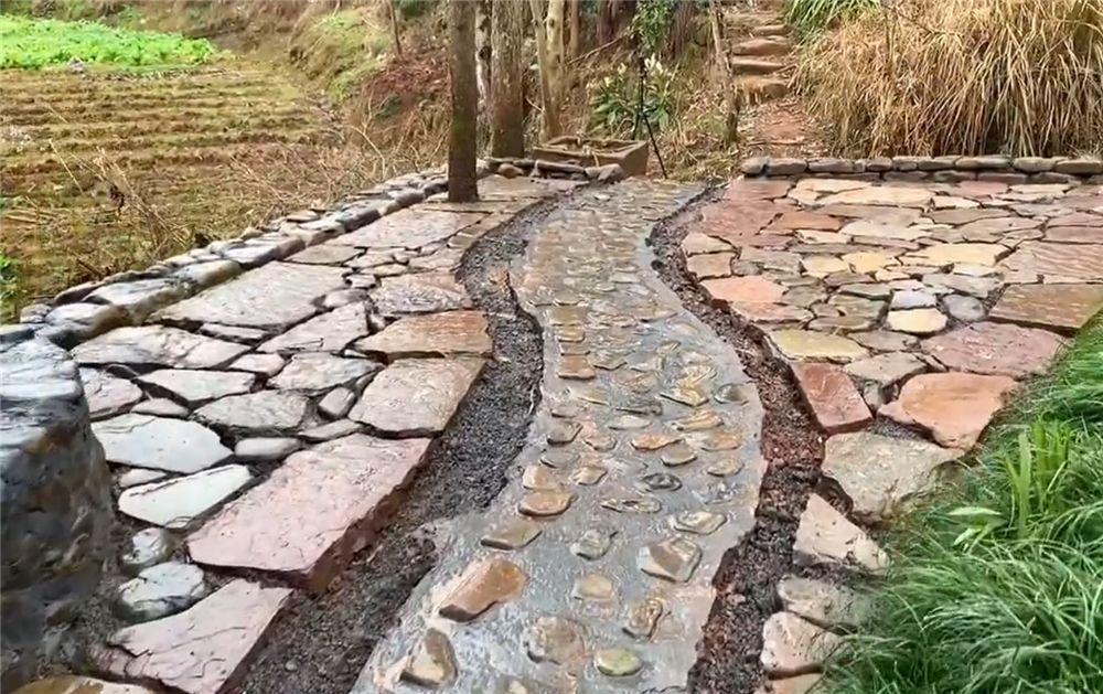 原本的小路被重新修葺,同样用捡来的石头,铺成一条通往老屋的小径,你别说,还真有那么几分诗意的田园氛围。