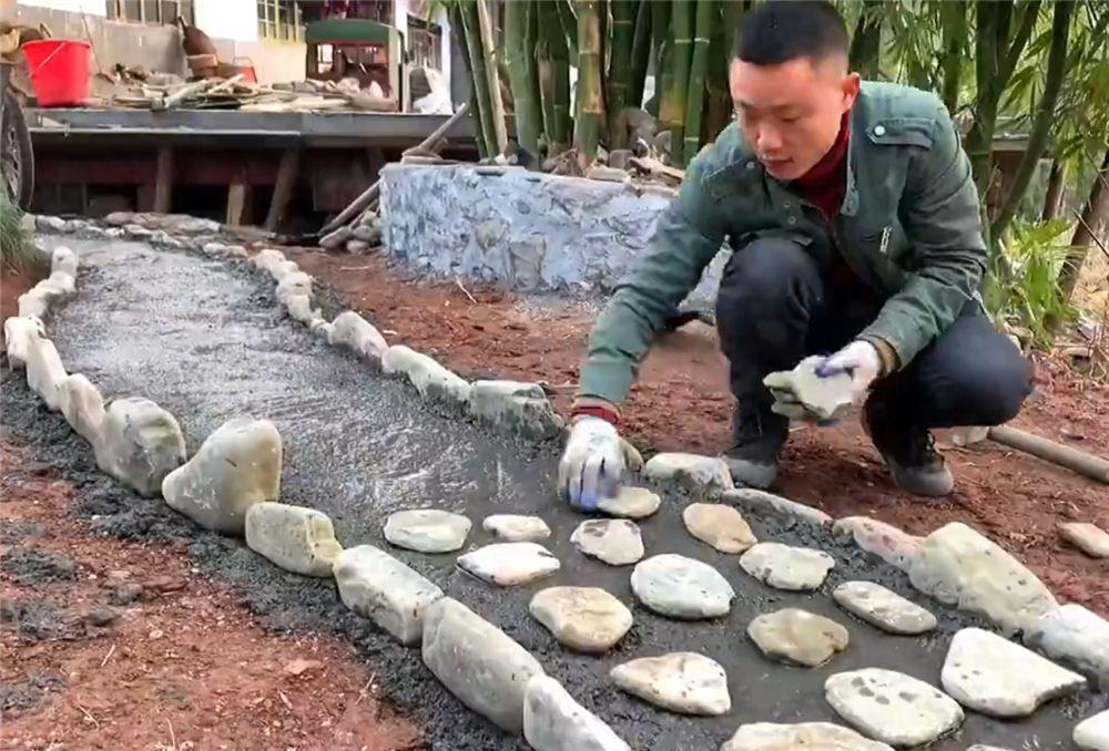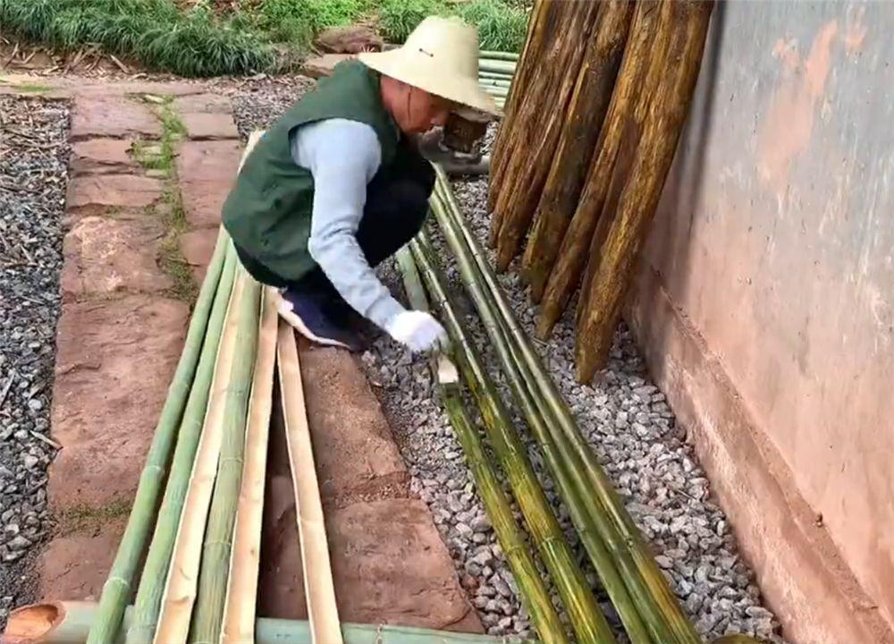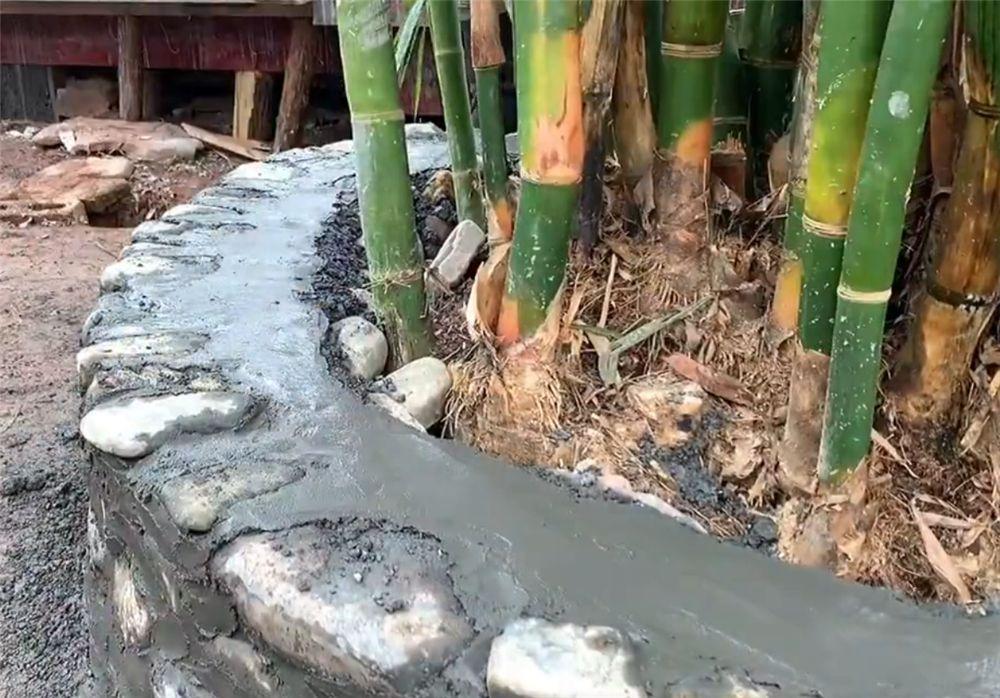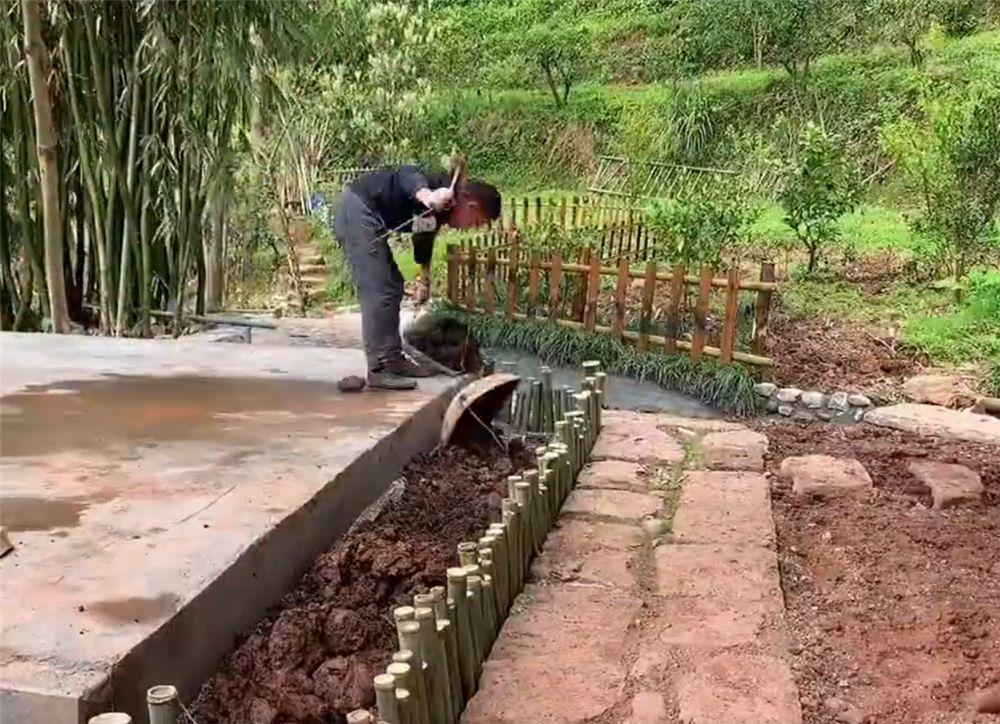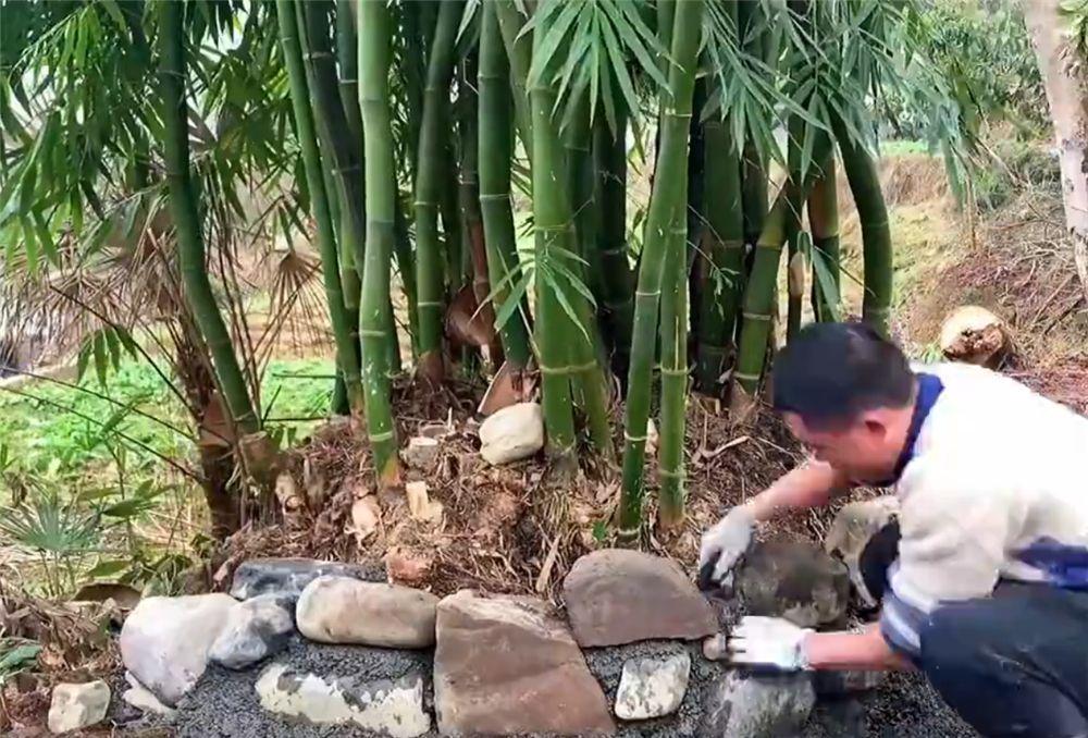 这位小伙还从河边捡来了石头,自己动手砌成“花池”,将屋子前的小竹林变成独特的风景。