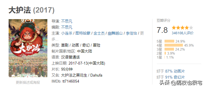不过时间证明了一切,在5年后的今天,在豆瓣上已有超34万人打出7.8的不错成绩,坐实国漫精品的地位了。