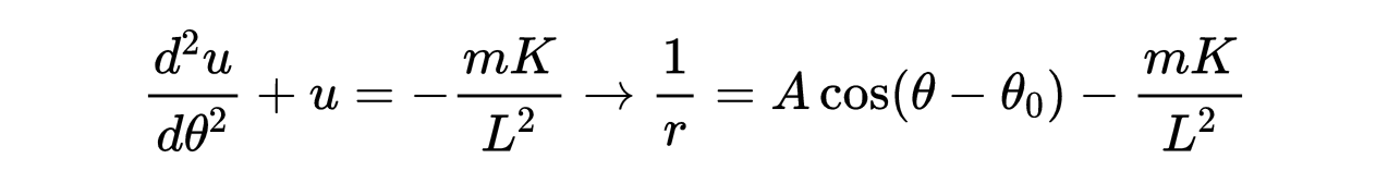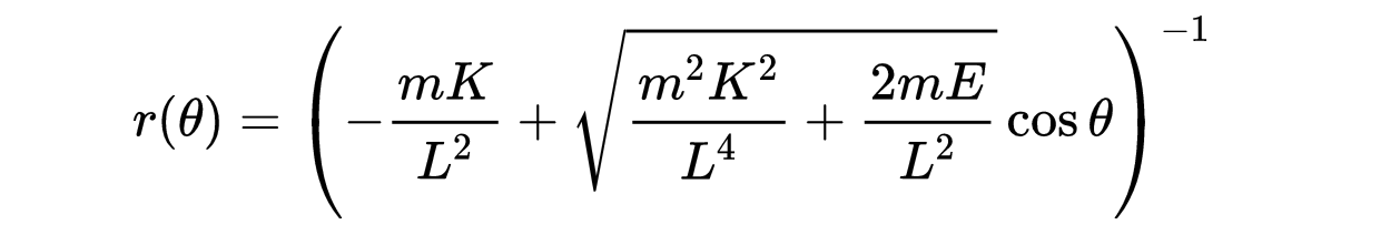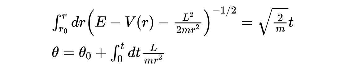 求方程10中两个方程的r(t)和θ(t)的精确解通常是相当棘手的。更直接的方法是计算物体的运动轨迹,即r(θ)。