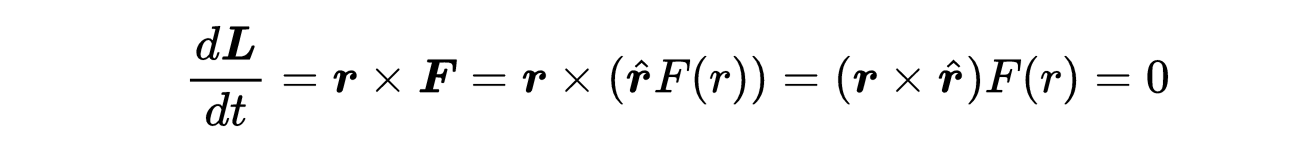 我们可以很容易地看出,受连心力作用的物体的角动量是恒定的: