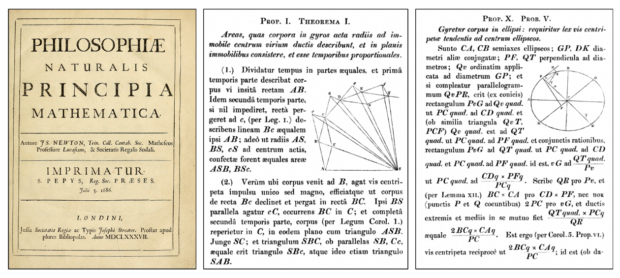 在1684年11月……在哈雷、胡克和雷恩开始探索讨论之后的11个月后,一本“论运动(De Motu)”的抄本送到了哈雷的家门口……他大吃一惊,因为在他的手中的是一门动力学的数学种子……起初,牛顿……把“论运动”本身视为一个目标。但是,一旦他的创造力被释放出来,其势头就无法抑制。“既然我已经谈到这个问题了,”他写道……“我很愿意在发表论文之前弄清真相……”论运动将成为他的杰作、有史以来最伟大的科学著作的雏形。就这样开始了科学史上最紧张的十八个月的工作。1686年4月,牛顿发表了……他的杰出著作的前三分之一。他将其命名为自然哲学的数学原理…