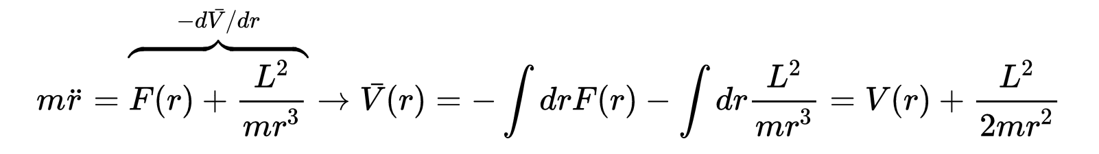 我们定义了一个有效势。因此,对于r来说,这个二维问题变成了一维问题,因为dθ/dt可以通过方程8消去。