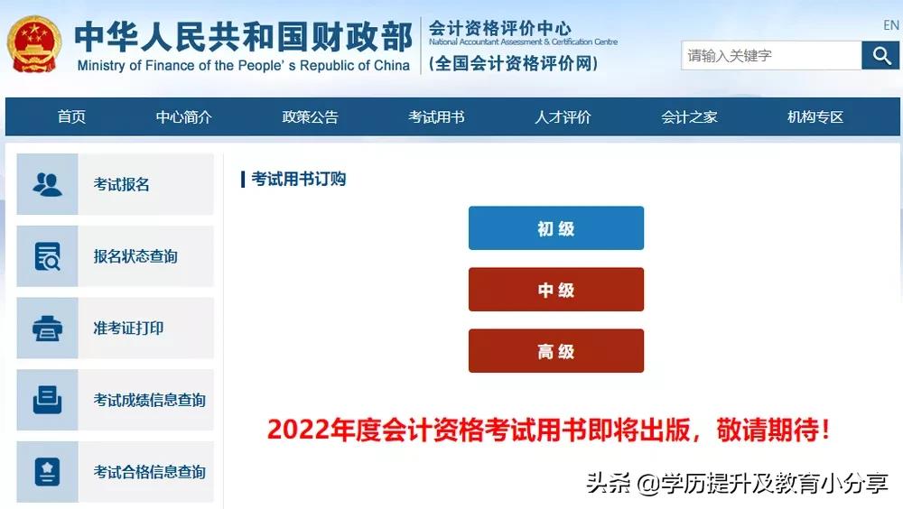 初级考生注意啦!2022年1月5日至1月24日“全国会计资格评价网”初级、高级资格考试报名系统开通。