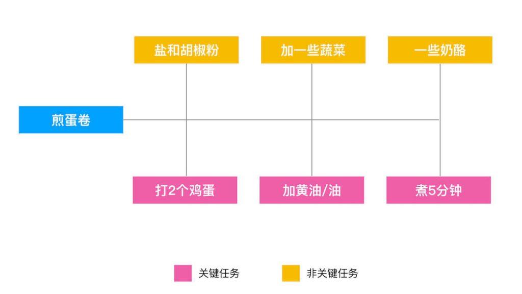 也就是说,配方中的三个步骤描述了使煎蛋卷制作项目成功所需的关键任务。