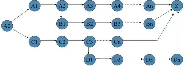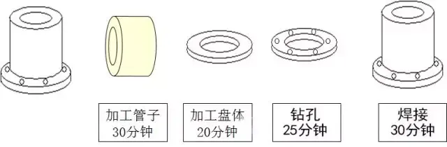 如果用A表示加工管子,B表示加工盘子,C表示钻孔,D表示焊接,则每个工序之间的关系可以列表和绘图如下: