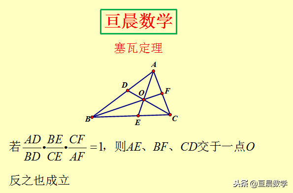 塞瓦:意大利数学家、水利工程师,该定理于1678年发表于《直线论》一书。