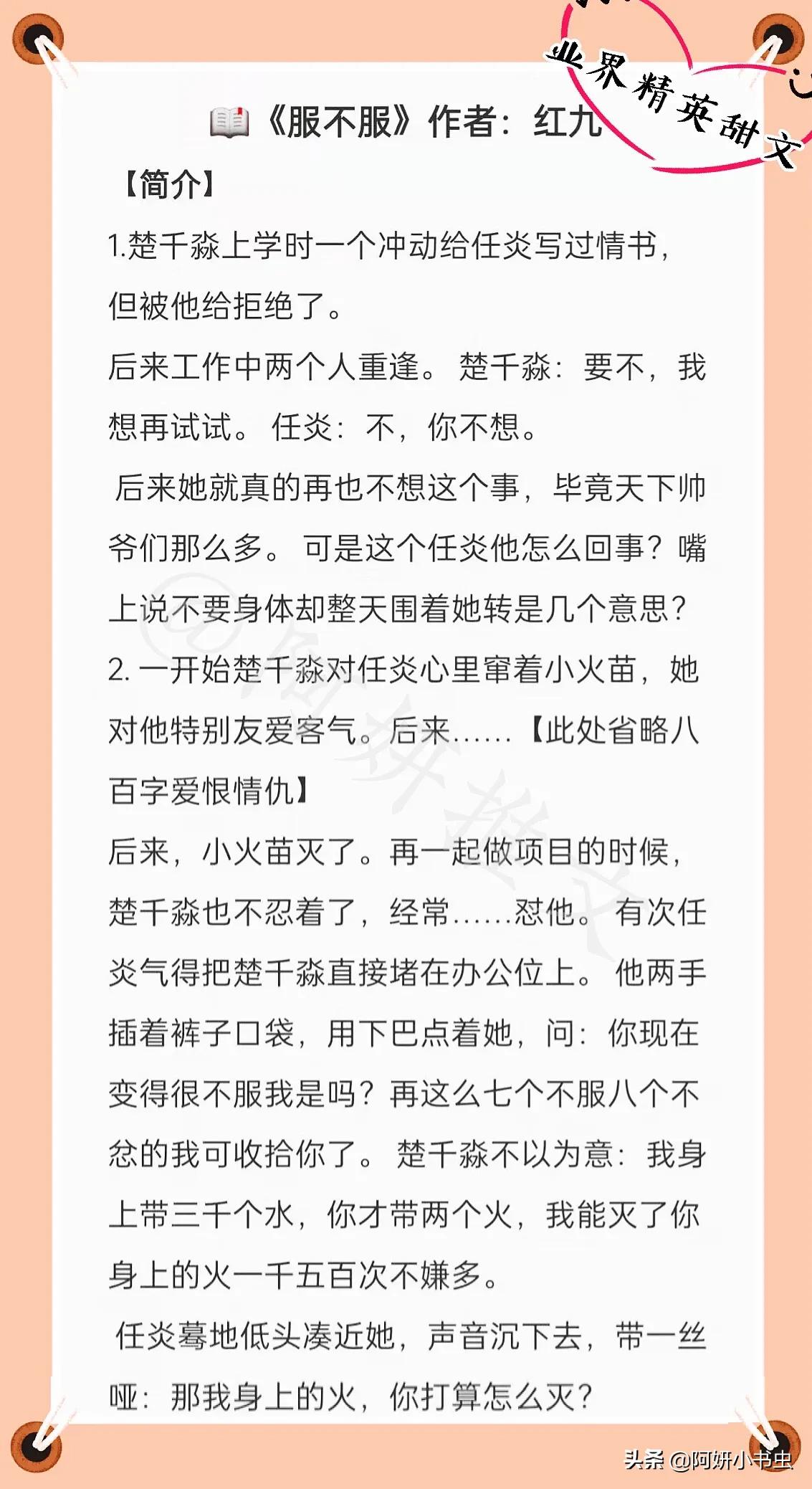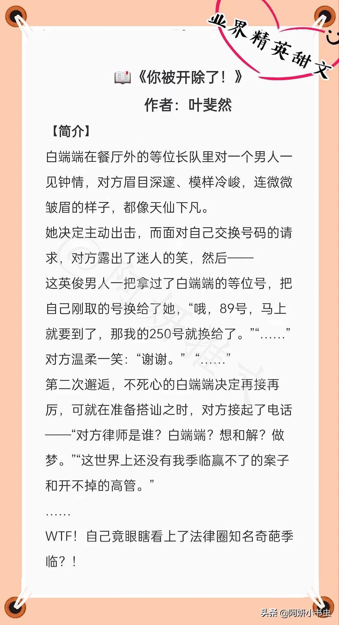 今天推荐的是都市业界精英文,男女主上下属关系,职场夫妻的相爱相杀互斗拌嘴,男女主都能独当一面,都不是职场小白的文,很甜且欢乐,不甜就来砍我!职场行业现实中又带着甜蜜与幽默,故事励志且充满正能量,值得一读。#小说##言情小说#