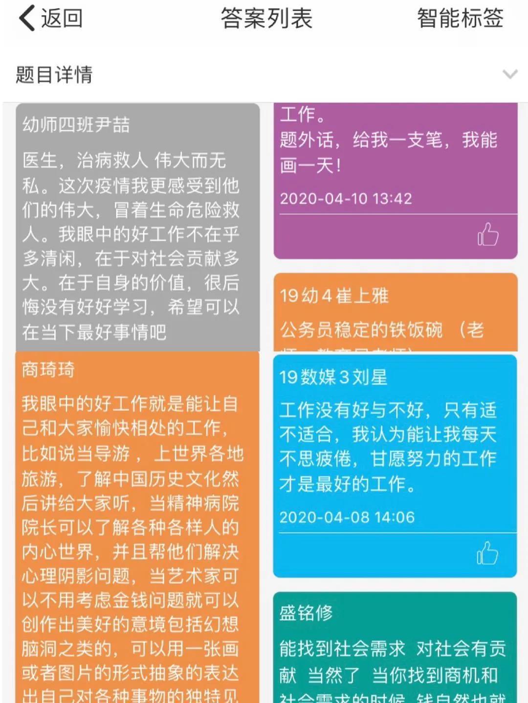 通过自我探索之价值观这节课的讲授和学生与老师的互动以及学生参与的讨论都能够感受到大学生对于社会贡献的意识。社会贡献的价值观绝非一日之功,作为大学生更应该将理论结合实际,身体力行去社会实践,为社会做更多有意义的事情,既是为了探索自己不断变化的职业价值观,更是为实现国家富强,人民幸福的中国梦凝聚强大的青春能量。