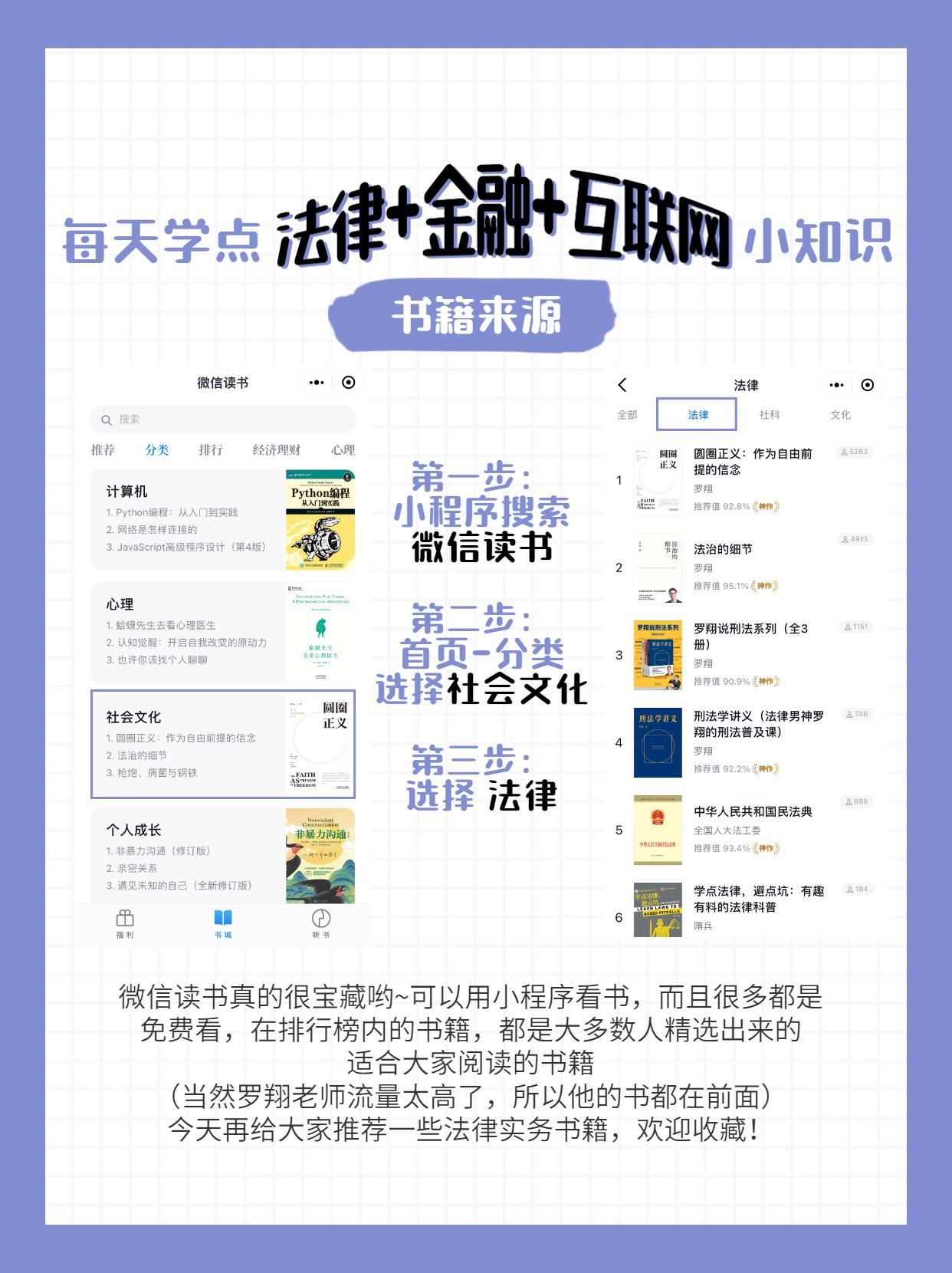 今天给大家推荐7本法律实务书籍!普通人也适合看,了解法律,增强法感~顺便给大家推荐阅读的渠道,那就是我们天天都在使用,但很少有人专门去打开的“微信读书”!