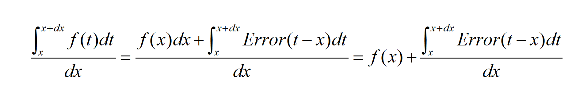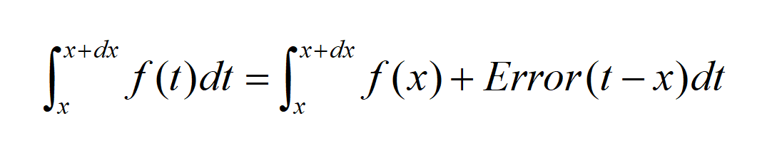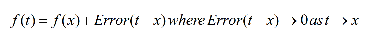 基本上,我们将f(t)写为两部分之和:f(x),以及f(t)与f(x)的误差(用Error表示)。当t趋近于x时,误差项趋于0。