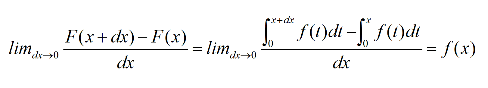 微积分基本定理告诉我们,如果我们将F(x)定义为F(t)图像下在0到x之间的面积,那么F(x)的导数就是f(x)