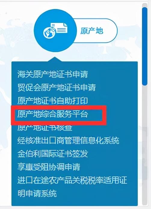 点击“原产地综合服务平台”后,选择企业备案——企业备案申请。