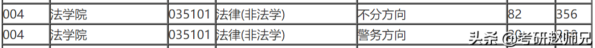 法律非法学属于统考专业,所以每个学校的考试科目都是一样的,咱们在下面各个学校中招生考试信息就不用一一初试科目①101 思想政治理论②201 英语一③398 法硕联考专业基础(非法学)& 397 法硕联考专业基础(法学)④498 法硕联考综合(非法学)& 497 法硕联考综合(法学)