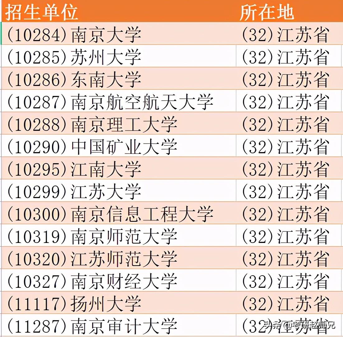 法律非法学,不看不知道,其实如果想考211,选择还是不错的这是跨专业的同学首选专业,非常火爆。整个江苏省有14所高校进行硕士招生,那来看看你想冲刺哪个段位的呢?