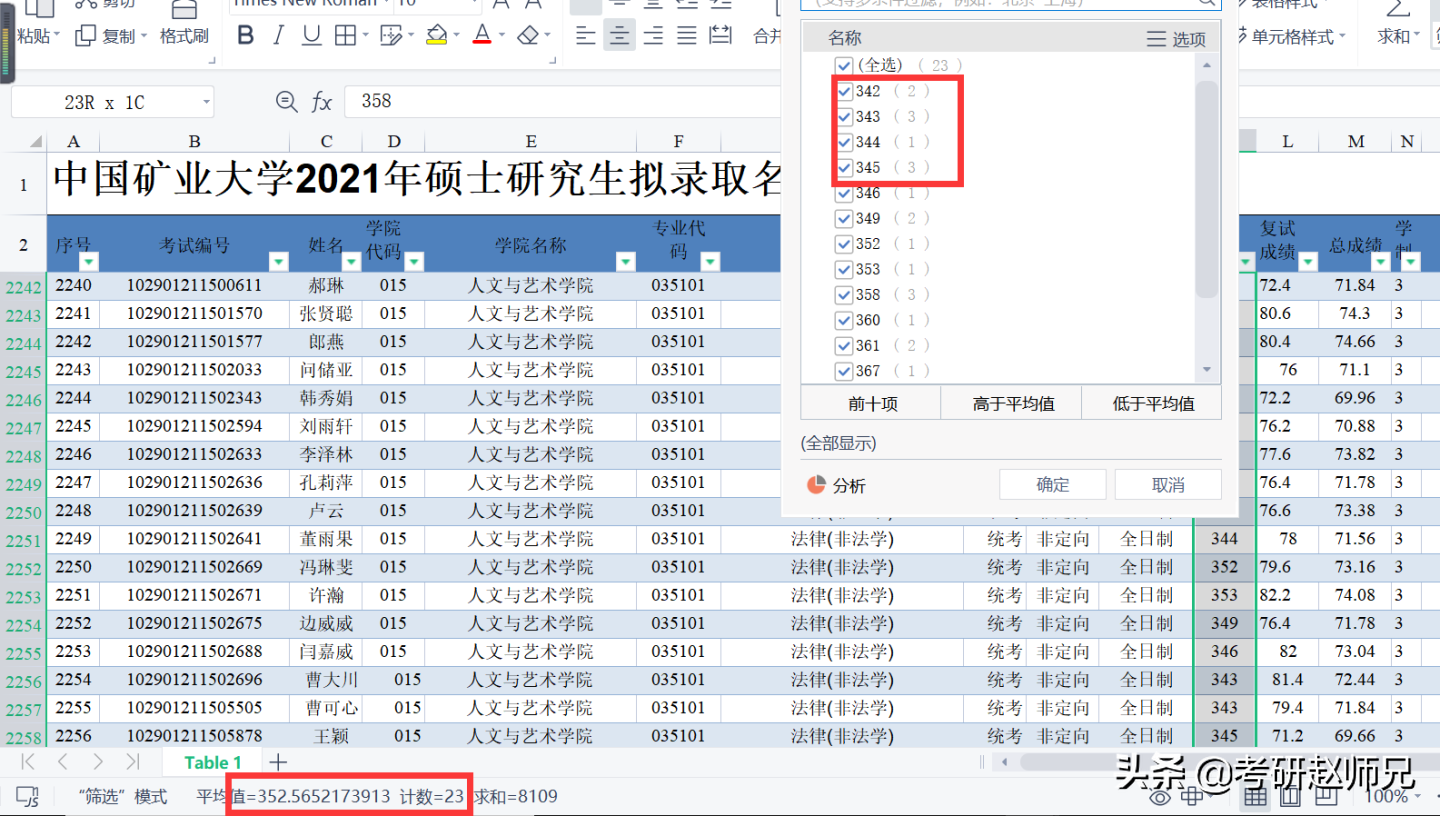 中国矿业大学一志愿录取23人(一人士兵计划)平均分352分,最低分342分