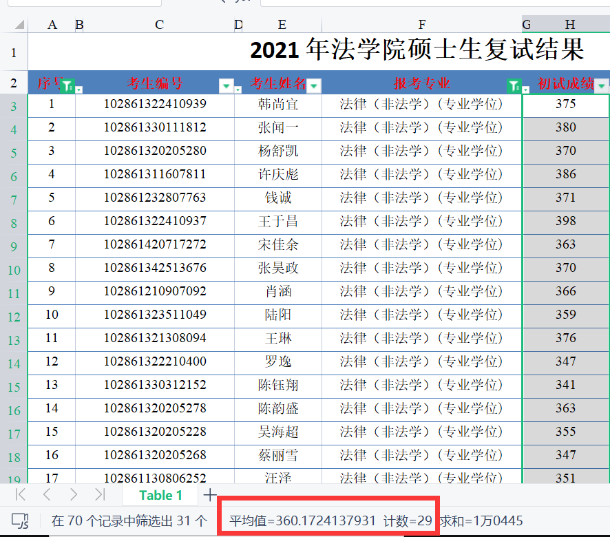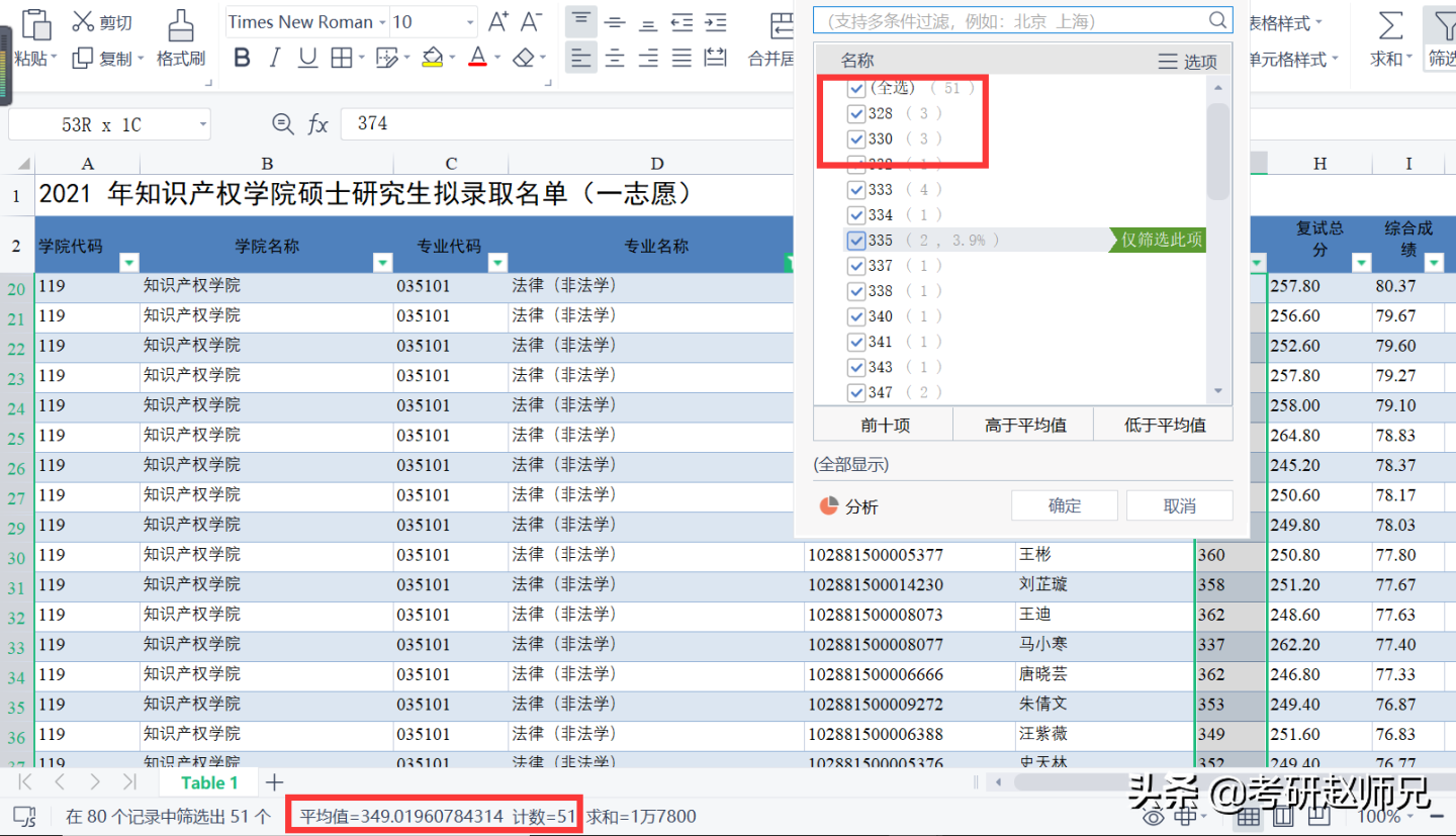 录取信息:最终录取29人,最低分341分,平均分360分