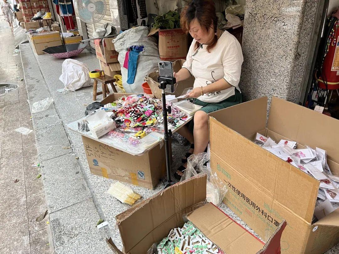 “老猎手们”回忆,早年间,义乌几条库存街都是遍地生黄金的地方。“以前人流量大,卖什么赚什么。”段启广介绍,义乌的尾货产业是和义乌小商品同步发展起来的,两者之间形成互补。外贸订单曾是消化库存的主要渠道,例如出口到非洲、中东等地区,伴随着淘特等专注下沉市场的电商平台、快手等短视频平台的兴起,涌动的内销市场也成为库存街的新生意:不少档口的店招就挂上了“欢迎主播选货”。北下朱村也成了重要的销货渠道。