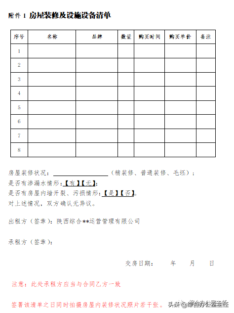 3、该房屋现有装修及设施设备情况详见合同附件,该附件作为甲方按照本合同约定交付乙方使用和本合同租赁期满乙方交还该房屋时的验收依据。