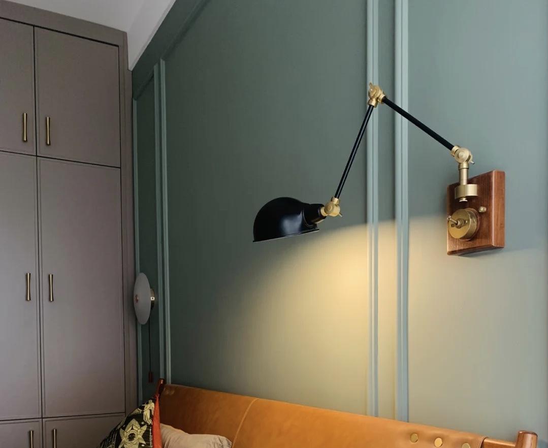 设计了木质底座可伸缩的壁灯,黄铜拉杆开关充满怀旧感,感觉很棒。加上核桃米的元素,很复古。